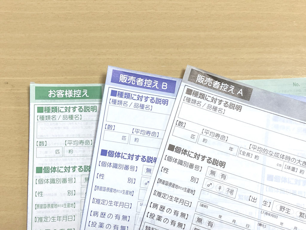 爬虫類用の生体販売説明書・確認書を用意しました。価格は2000円(税込み2200円)になります。 <<特徴>> ■A4版(1冊:3枚つ刷りが100セット)です。 ■4種類記入できます。 ■3枚複写…