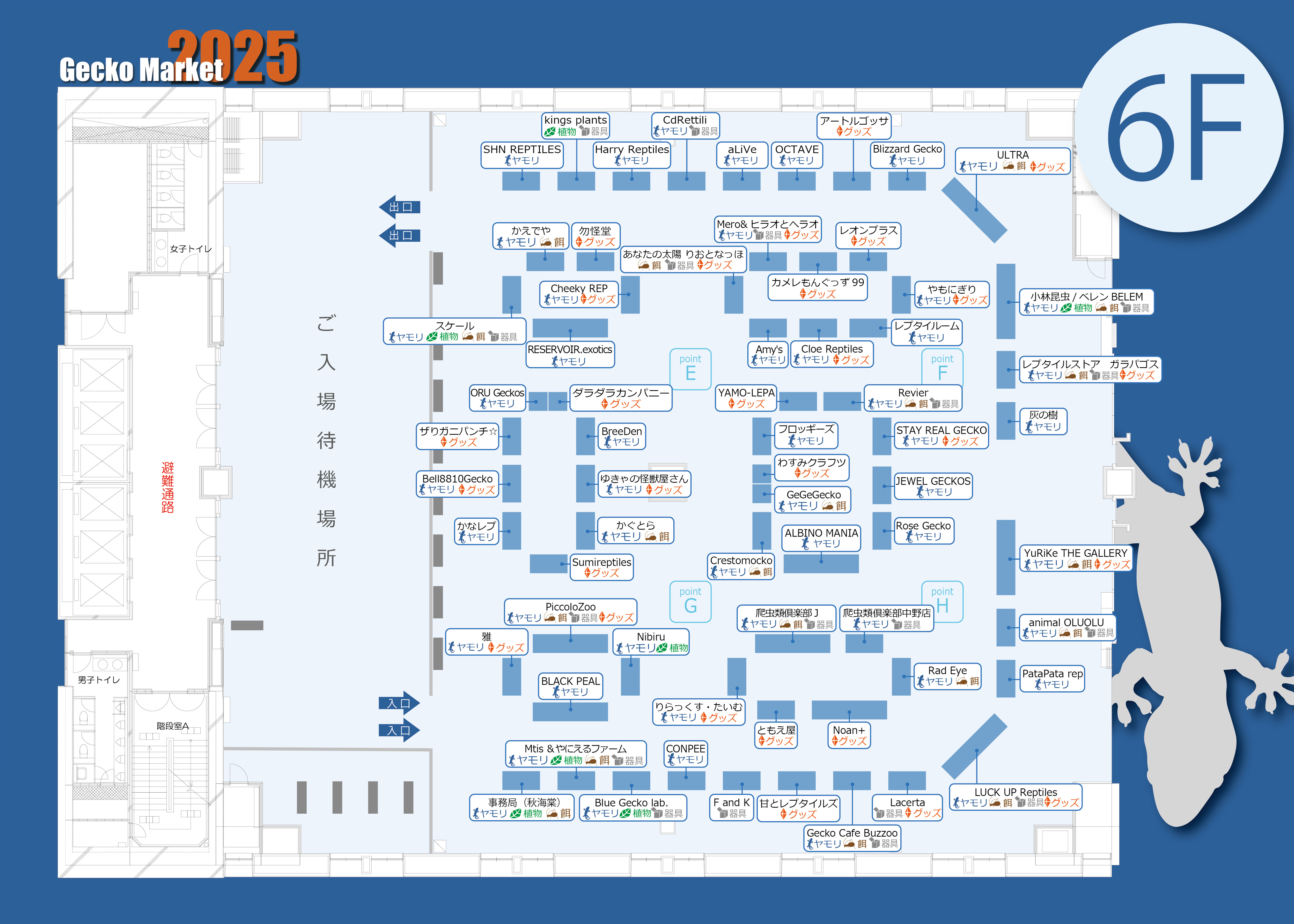 GeckoMarket 2025の会場案内図を公開しました。 画像下部の「拡大表示する」をクリックすると拡大して会場図を確認できます。